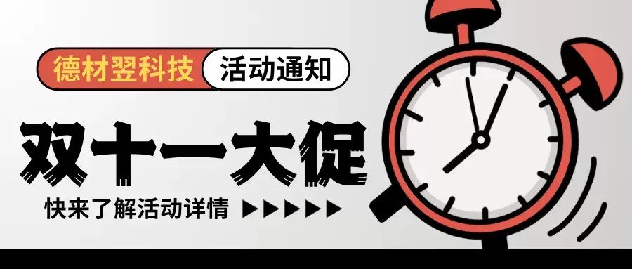 尊敬的合作伙伴们,值此2025年“双十一购物狂欢节”之际,为了感谢广大合作伙伴对我们的厚爱与支持,同时扩大我们的合作网络,德材翌科技特推出 双十一优惠促销 活动。