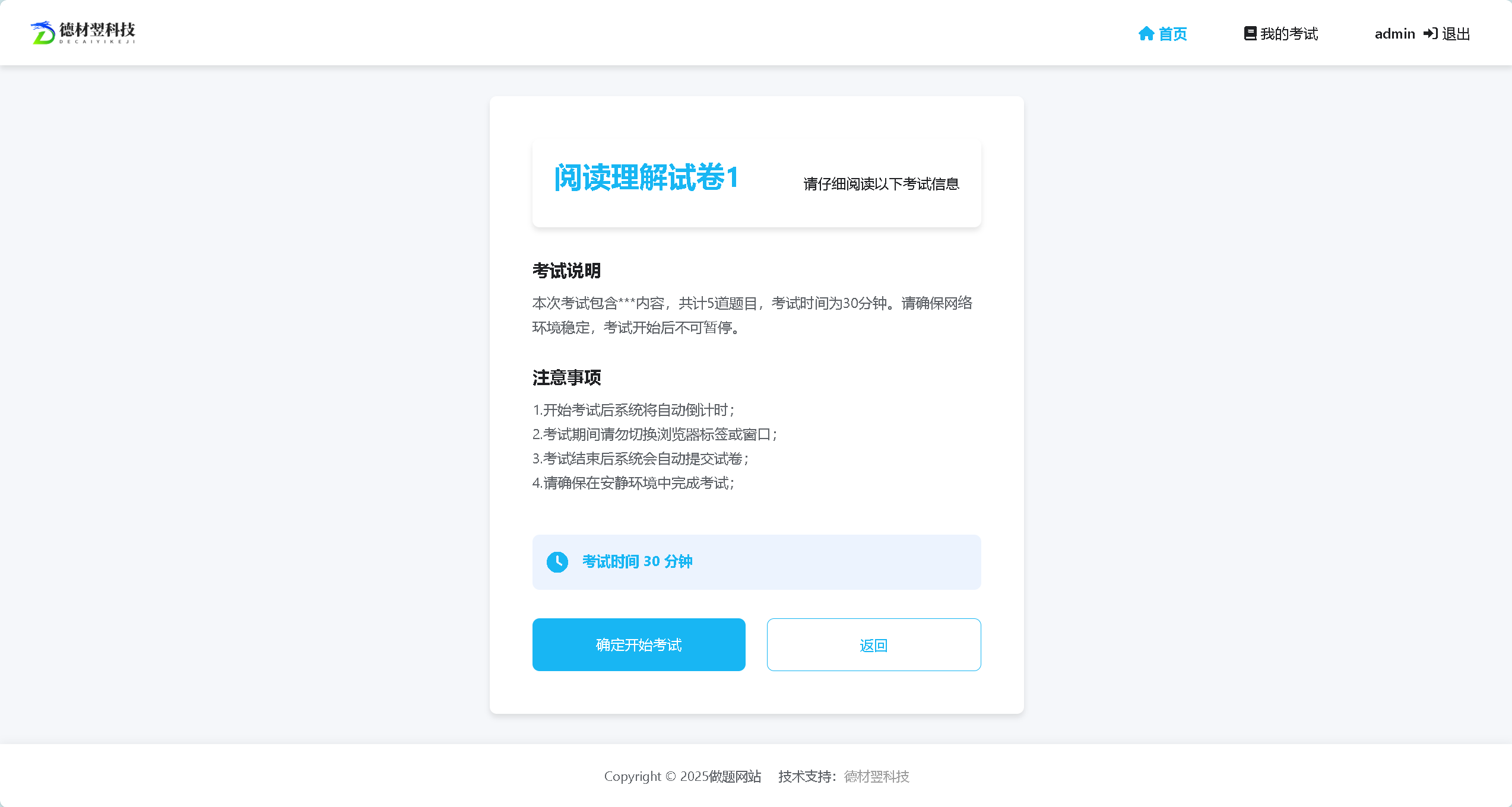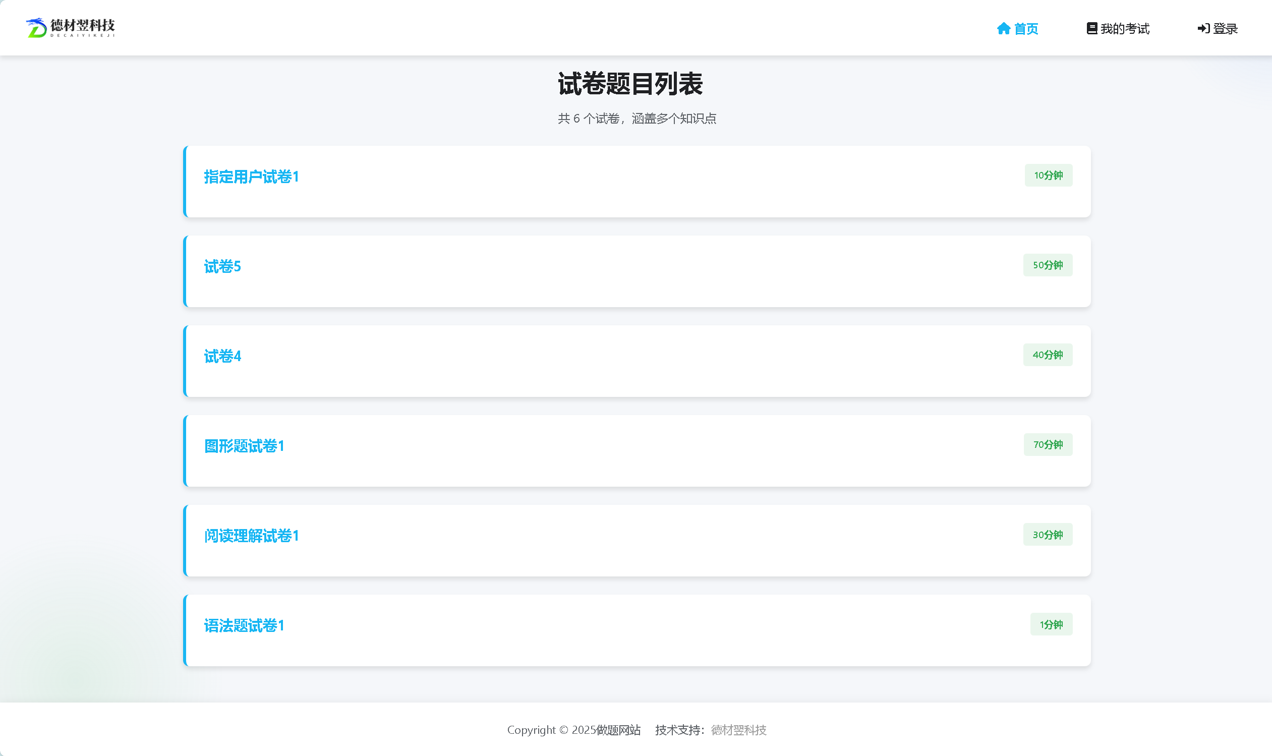 德材翌科技为教育机构定制开发了一套内网部署的在线考试系统,专为封闭教学场景设计,具备以下核心价值: