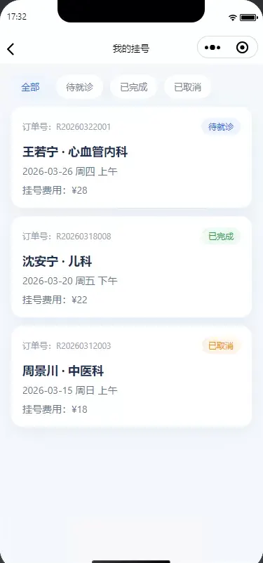患者可在个人中心查看预约记录、挂号状态、就诊信息等内容,方便管理历史预约,提升整个就诊流程的透明度与便捷性。